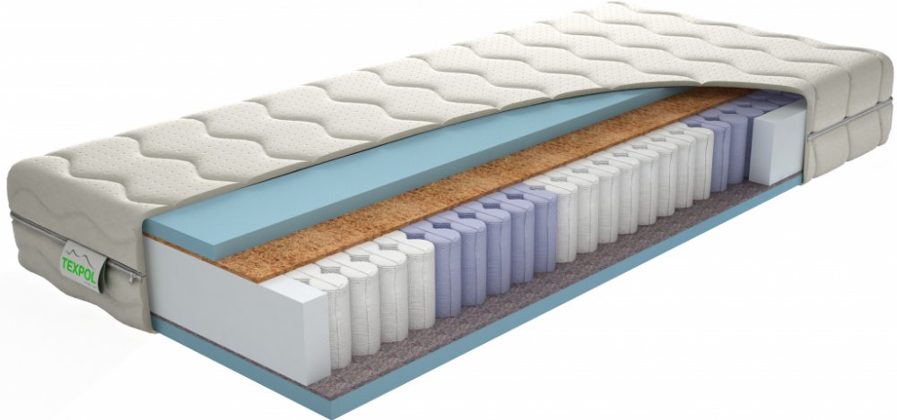 STELA PLUS - oboustranná taštičková matrace s potahem Aloe Vera Silver 200 x 200 cm Jádro matrace STELA PLUS se skládá z taštičkových pružin (cca 480 ks) a je obaleno do PUR pěnové desky a textilní plsti proti protlačení pružin. Matrace má možnost výběru tvrdší a měkčí strany ležení. Tvrdší strana je navíc opatřena kokosovou deskou. Výška matrace s potahem je cca 21 cm Matrace je oboustranně profi...