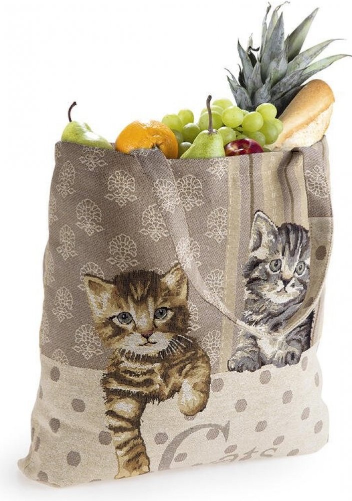 vejde se do každé kabelky s vytkávaným vzorem velmi prostorná Nákupní taška s roztomilým vytkávaným vzorem kočiček v příjemné béžových odstínech vydrží roky. Je pevná, objemná a lehce ji složíte do kabelky. Materiál: 65 % polyester, 35 % bavlna Rozměr: v. 42 x š. 45 cm Doporučené praní: 40 °C