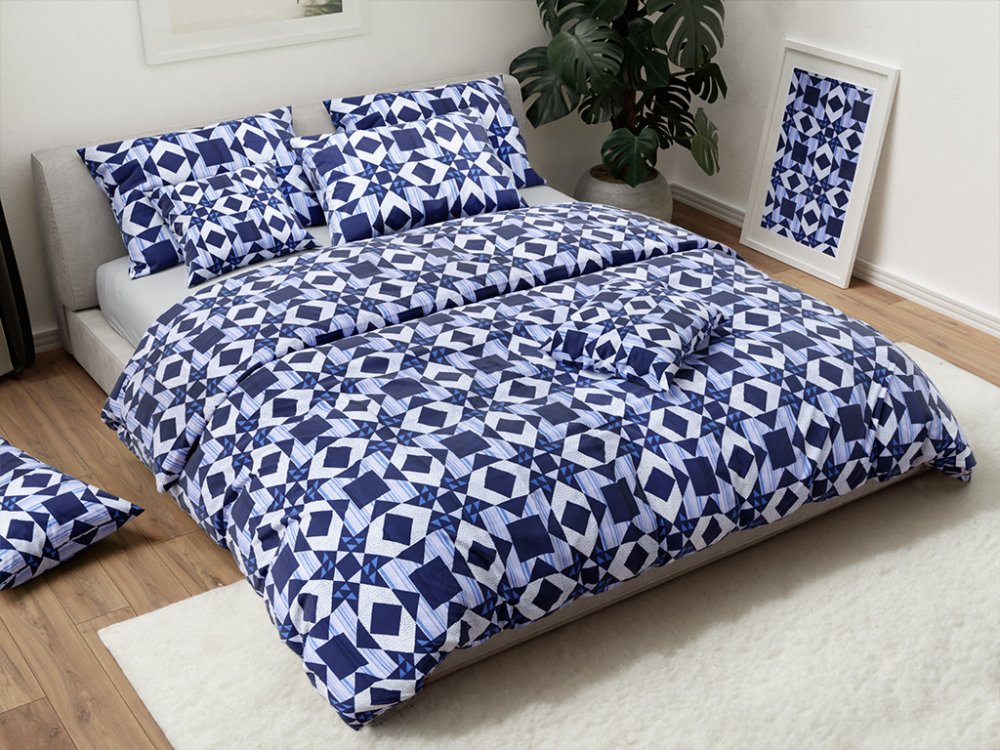 Bavlněné povlečeníStálicí a nejrozšířenějším materiálem ložního prádla je zaručeně bavlna. Zákazníci ocení její skvělé vlastnosti a cenovou dostupnost. Bavlna je prodyšná, měkká a výborně odvádí jakoukoliv vlhkost. Hodí se tedy i pro osoby, které se v noci více potí. Možnou nevýhodou je mačkání a následná nutnost žehlení. Léty prověřená bavlna je přírodní vlákno získané z bavlníku, které je šetrné k pokožce celého těla.Materiál: 100% bavlnaGramáž materiálu: 130 g/m2Barva povlečeníModráNebeská inspirace, tóny modré probudí vzpomínky na léto, vodu nebo čistotu. Barva spolehlivosti a míru, která celkově povzbuzuje a snadno se kombinuje. Oblíbená je v ložnicích, má chladivý účinek a podporuje uklidnění a snění. Nadčasové světlejší odstíny se hodí do menších prostor s jednoduchými doplňky.Pozn. Zobrazení barvy se může nepatrně lišit od skutečnosti.ZapínáníPatentySpolehlivé a rychlé zapínání na patentyje dlouhodobě velice oblíbené. Patentové zapínání se skládá ze dvou částí, které se protilehle přišívají k textilii. Protilehlé druky do sebe dokonale zapadají a nerozepínají se. Jedná se vlastně o stiskací knoflíky na textile, které nejsou na první pohled zřetelné.Motiv povlečeníAbstrakceRozveselte vaše smysly s abstraktním povlečením. Ideální doplněk do nudné ložnice nebo pro lidi, kteří mají rádi změnu, hravost a tvořivost. Dojměte všechny vaše city s barevnými a kreativními motivy. Osvěžte interiér a dodejte mu šmrnc s motivem něžných vln, dlaždic nebo jemných linek. Nalezněte volnost a jedinečné pohodlí v soukromí svého domova.Styl povlečeníModerníOkořeňte interiér ložnice, buďte originální a nevšední. Vytvořte kontrast barev, mezi pastelové odstíny zařaďte jednu šokující. Odlište se od ostatních. Jasné barvy povlečení s živými vzory jsou tou správnou volbou. Syté barvy a motivy květin, kruhů, hvězd nebo pruhů zaručí trendy ložnici. Moderní styl je oblíbený a hodí se do všech domácností, jeho vzdušnost i praktičnost ocení každý.Můžu povlečení žehlit?Bezesporu nejoblíbenější materiály povlečení jako je bavlna, bavlněný satén nebo mikrovlákno je nutné žehlit. Jediný materiál, který nevyžaduje žehlení je krep. Ihned po vyprání povlečení vypněte pomocí kolíčků na sušák. Žehlete naruby, tím zabráníte poškození materiálu a vyblednutí barev. Důkladná péče o vaše povlečení se vyplatí.Povlečení je nutné žehlitNa kolik stupňů povlečení prát?Obecně platí, že ložní prádlo pereme v teplotním rozmezí 40 až 60 °C. Bílé nebo bavlněné povlečení lze prát až na 60 °C, zatímco u bavlněného saténu je vhodné zvolit teplotu nižší. Celkově vysoké teploty praní mohou poškozovat vlákna, působit opotřebovanějším dojmem nebo způsobovat vyblednutí barev. Před prvním použitím by teplota praní měla být min. 40 °C.Doporučená teplota praní: 40 °CJak často povlečení prát?