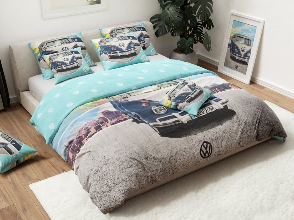 Textilomanie Dětské povlečení AUTO VW modro-šedé 80 x 80 cm 135 x 200 cm