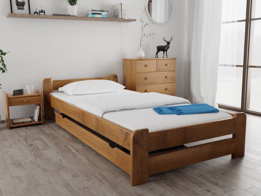 Jednolůžková postel o rozměru 80 x 200 cm se nejčastěji využívá v dětských pokojích, na studentských privátech nebo kolejích. Pro svoji šířku 80 cm se hodí spíše pro méně náročné spáče a děti. Šetří také prostor, proto se hodí do menších ložnic nebo pokojů. Pokud řešíte i vy problém s místem v malé garsonce, tak právě tato postel bude super volbou, navíc lze použít úložný zasunovací box pod postel.