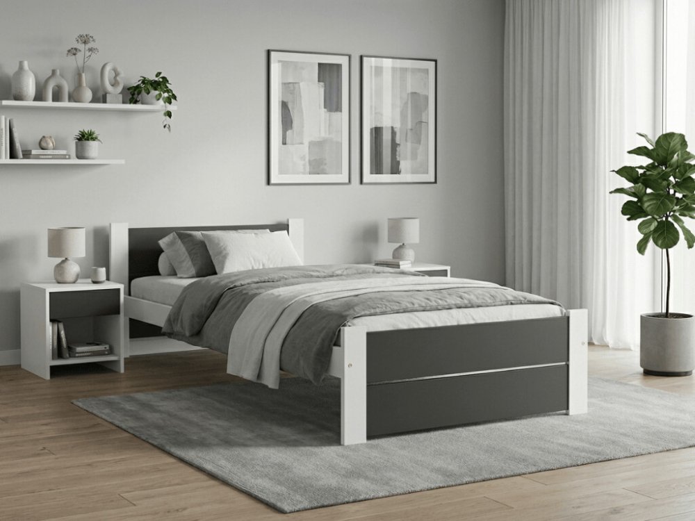 Postel kombinuje antracitovou a bílou barvu, což jí dodává moderní a nadčasový vzhled. Díky jednoduchým liniím se hodí do různých interiérů. Tip: Zkombinujte ji s bílými nebo šedými doplňky pro elegantní vzhled ložnice.