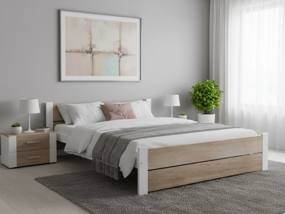 Konstrukce z borovicového masivu Čela postele z MDF desky