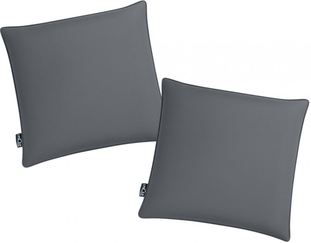 Polyesterová tkanina je odolná vůči UV záření, což pomáhá chránit barvu před vyblednutím. Díky tomu polštáře zůstávají dlouho krásně tmavě šedé i při častém vystavení slunci. Tip: Když polštáře nepoužíváte, skladujte je na stinném místě pro ještě delší uchování barvy.