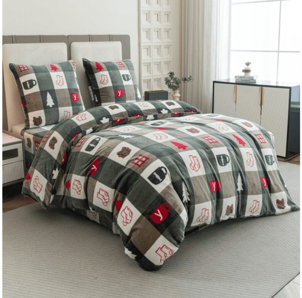 Textilomanie Povlečení mikroplyš CHRISTMAS SOCKS zelené 2x 70x90 200x220