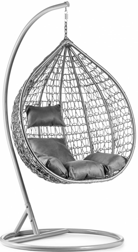 MateriálLátka: 100% polyesterUmělý ratanOcelový rámBarvaŠedáRozměry křeslaŠířka: 108 cmHloubka: 70 cmVýška: 115 cmVýška sedu:72Nosnost: 150 kgRozměry stojanuVýška stojanu: 200 cmPrůměr podnože:105 cmBezpečnostní upozorněníKřeslo používejte až po úplném smontovaní. Montáž provádí každý zákazník sám a na vlastní odpovědnost.Než se do křesla posadíte, ujistěte se, že závěs je pevně přišroubován.Křeslo není určené k prudkému houpání do stran.Pokud používáte pro zavěšení křesla stojan, umístěte ho na rovný a pevný povrch, kde bude jeho pozice stabilní (např. podlaha, vydlážděná terasa).Děti do 6 let mohou křeslo používat pouze pod dohledem dospělé osoby!Součástí balení jsou i polštáře a stojan na křeslo. Dodávané v demontu.Jak vybrat závěsné křeslo?Závěsná křesla, někdy označovaná jako vajíčka jsou trendem posledních let. Skvěle se hodí do exteriérů, ale i interiérů. Neméně důležité jsou technické parametry křesla, které nesmíte před nákupem přehlédnout. Víte, podle čeho si závěsné křeslo vybrat? Poradíme vám.Přečíst celý článek