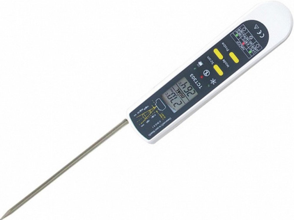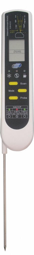Infračervený + vpichový digitální teploměr TFA 31.1119.K DUALTEMP PRO je skvělým pomocníkem při kontrole teploty potravin, ale také dalšího materiálu. Přístroj nabízí dvojí způsob měření teploty - buď bezkontaktně infračerveným paprskem nebo pomocí vpichové sondy. Dále přístroj nabízí funkce jako zobrazení současných hodnot, nejvyšší a nejnižší teploty během měření, funkce podržení a uzamčení, HAC...