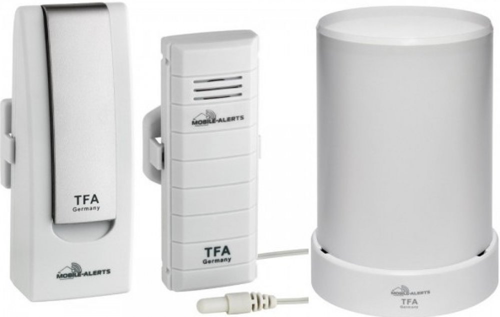 TFA 31.4004.02 WEATHERHUB – set č. 4 – součástí setu je brána, čidlo teploty s kabelem, srážkoměr – startovní sada vhodná pro všechny, kdo mají doma bazén, terárium, akvárium či chtějí monitorovat teplotu v mrazáku, lednici a zároveň sledovat množství spadených srážek např. na zahradě.