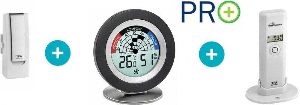 TFA 30.3060.01 - bezdrátový teploměr/vlhkoměr + 3x čidla teploty/vlhkosti – ideální pro monitoring teploty a vlhkosti na více místech, obsahuje i konzolu s displejem, takže informace jsou ihned po ruce i pro ostatní členy domácnosti
