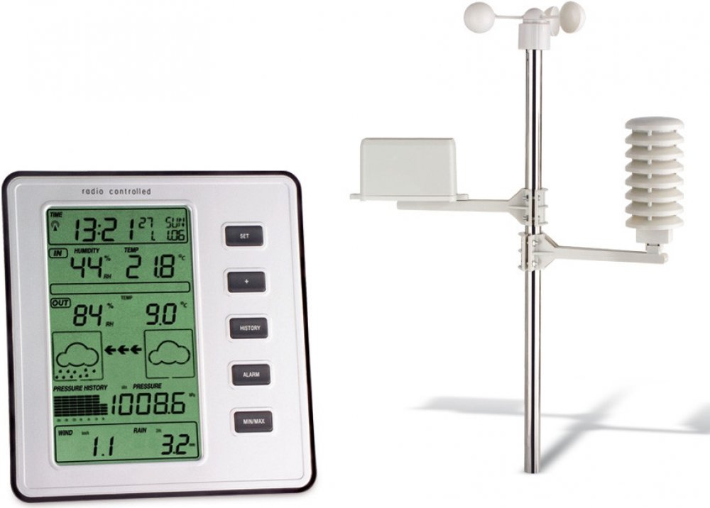 Bezdrátový přenos venkovní teploty, vlhkosti, množství srážek a síly větru z venkovních vysílačů do základny (přenosová frekvence – 868MHz).