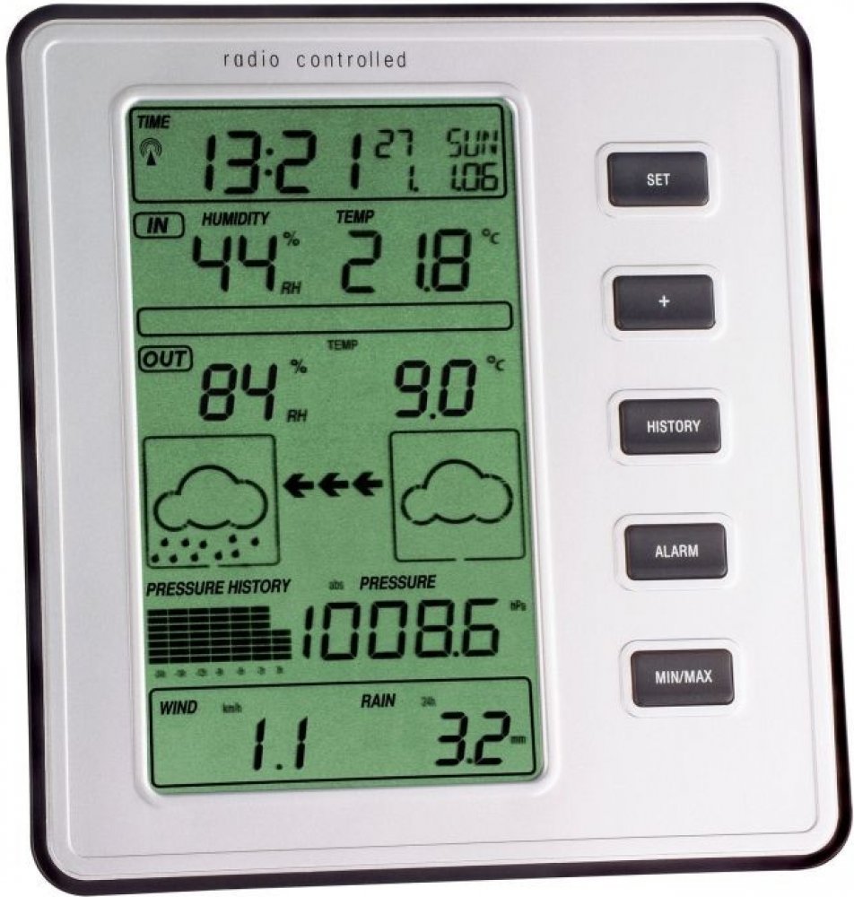 Programovatelný alarm pro některé události spojené s počasím, jako teplotní alarm nebo varování před bouřkami.