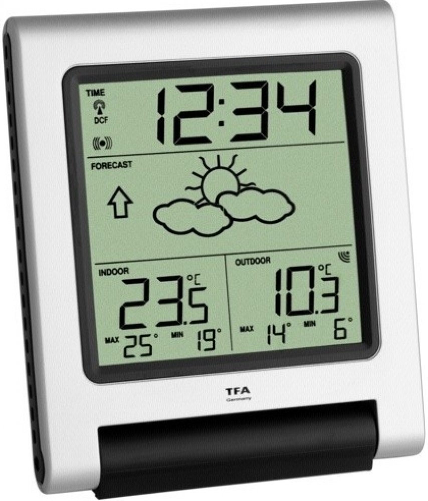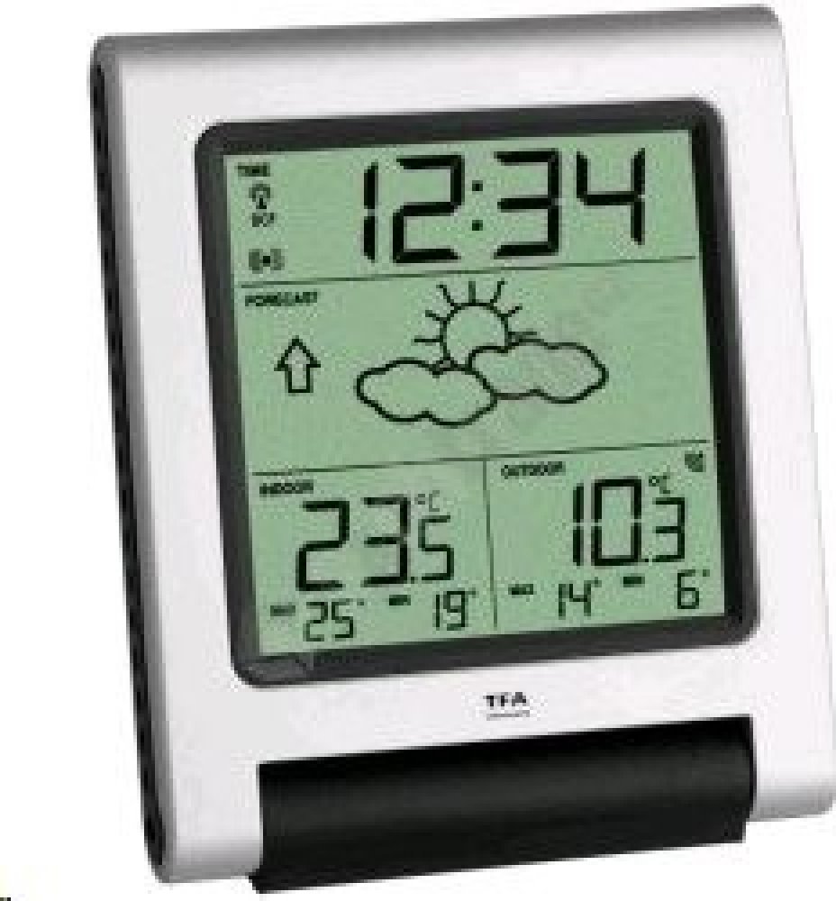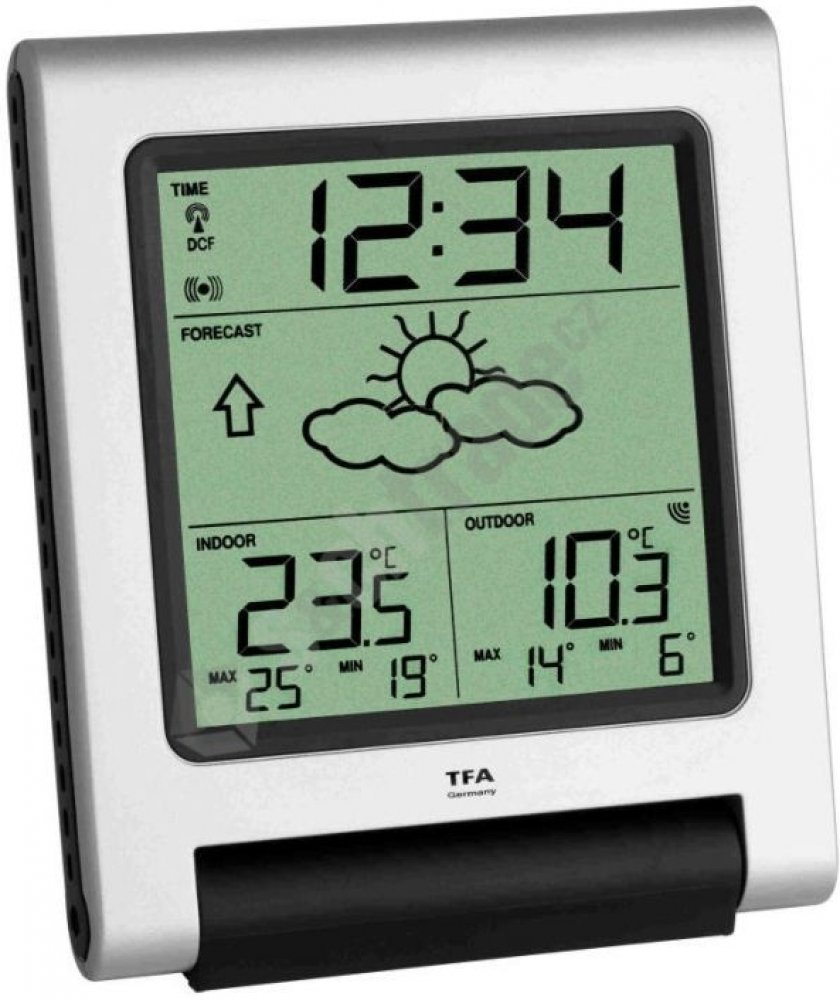 Bezdrátová meteostanice TFA 35.1089.IT měří vnitřní a vnější teplotu a disponuje hodinami řízenými DCF signálem. Stanice dokáže komunikovat pouze s 1 bezdrátovým senzorem (na frekvenci 868MHz, konkrétně model TFA 30.3147), přičemž ten je již v balení. Bezdrátové čidlo má dosah až 100m při přímé viditelnosti a mimo dosah jiných elektro zařízení, jinak méně. Přístroj zobrazuje také symbolovou předpo...