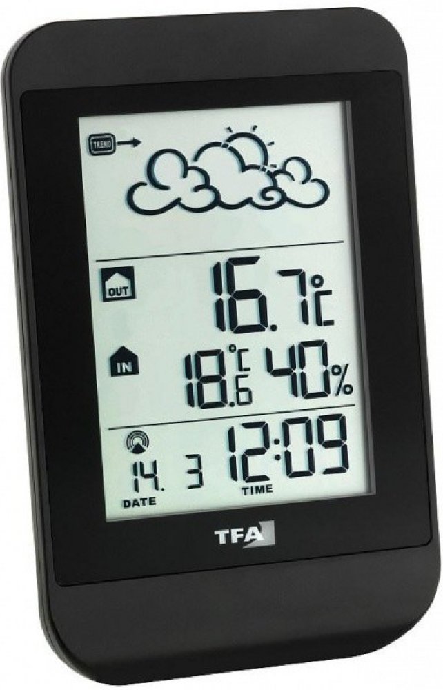 S domácí meteorologickou stanicí TFA 35.1131.01 JUNO vás již počasí nepřekvapí. Meteostanice je určena pro běžné domácí použití a je vybavena základními funkcemi jako je zobrazení vnitřní a venkovní teploty, vnitřní vlhkosti, symbolové předpovědi počasí (7 různých symbolů). Meteostanice na svém displeji zobrazuje též datum a čas, jenž je přijímán rádiovým signálem DCF.