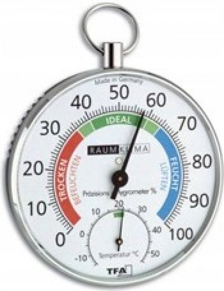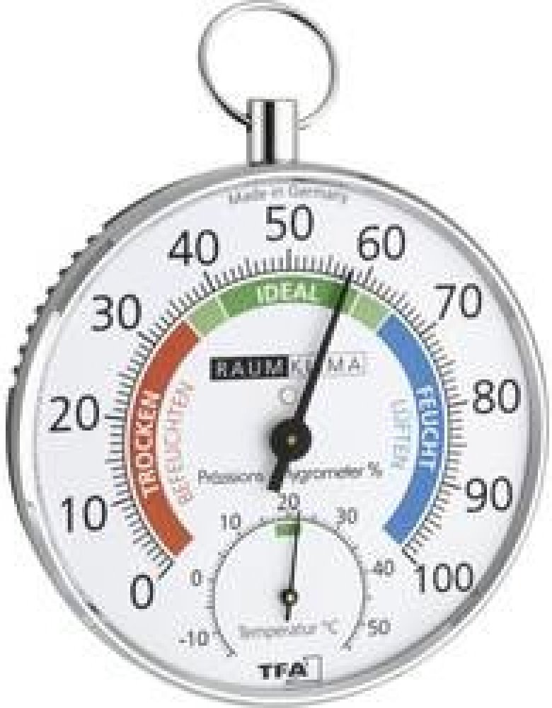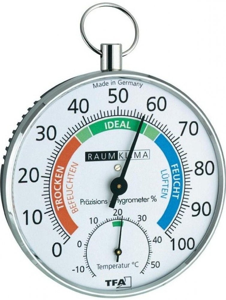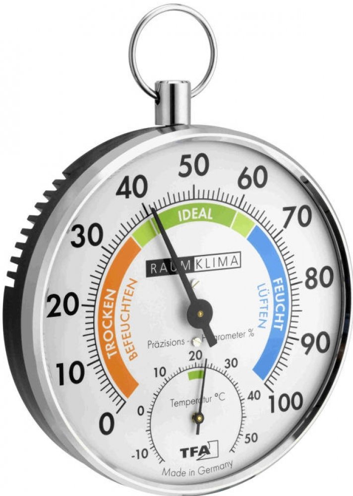 Barevné komfortní zóny ukazují, zda je klima v místnosti ideální nebo zda je třeba vyvětrat. Teplota je zobrazována na malém ciferníku.