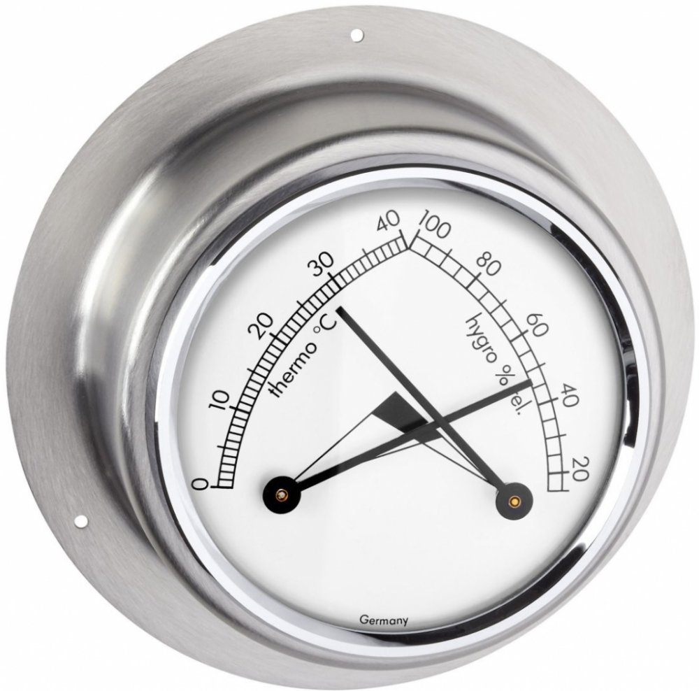 Teploměr a vlhkoměr je vyrobený z nerezové oceli v klasickém námořním designu. Sledování vnitřní teploty a vlhkosti může napomoci k vytvoření komfortního vnitřního klimatu a může pomoci ušetřit náklady na vytápění. Teploměr je kompletně vyrobený v Německu.