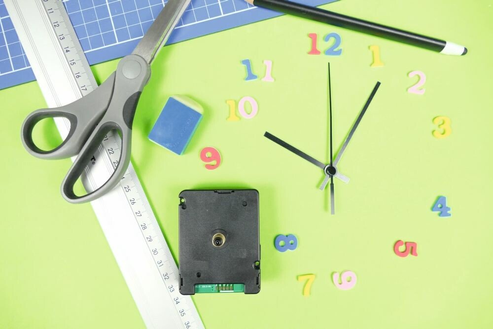 Hodinový strojek s rádiově řízeným časem a tichým chodem pro sestavení vlastních hodin nebo pro výměnu nefunkčních hodinových strojků. Sestrojte si snadno vlastní nástěnné hodiny.