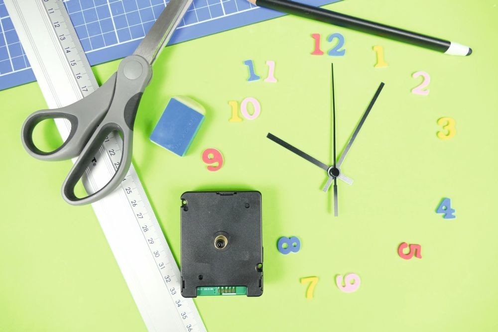 Hodinový strojek s rádiově řízeným časem a tichým chodem pro sestavení vlastních hodin nebo pro výměnu nefunkčních hodinových strojků. Sestrojte si snadno vlastní nástěnné hodiny.