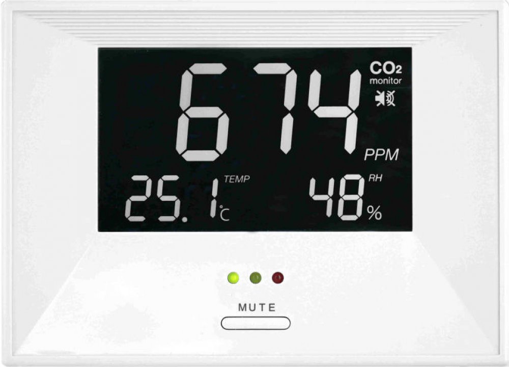 - Je-li koncentrace CO2 v okolním vzduchu vyšší než 1200 ppm, ozve se zvukové upozornění. To můžete vypnout stisknutím tlačítka „MUTE“