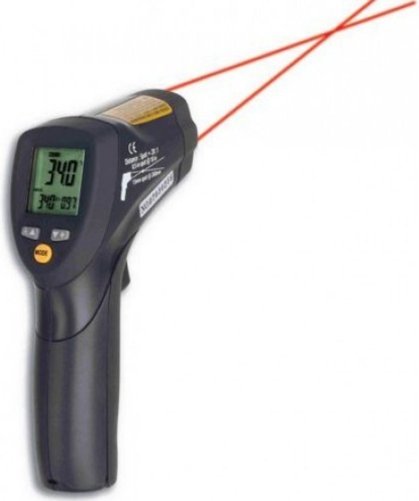 K přesnému zaměření místa měření teploty je tento teploměr vybaven dvojitým zaměřovacím laserem pro přesnější určení měřeného místa. Laserové paprsky se navzájem kříží (do jednoho bodu, díky speciální konstrukci optiky), takže tímto infra teploměrem lze měřit i relativně malé plochy.
