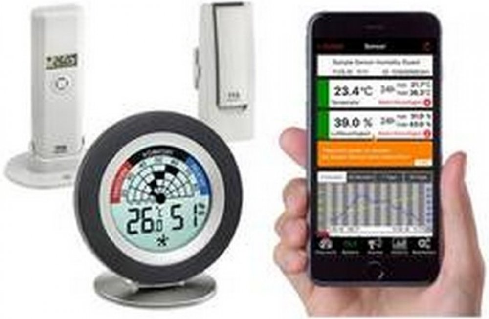 VybaveníNastavitelné mezní hodnoty alarmuZprávy PushZobrazení historie z dataPoznámka přes úroveň pohodlí ve vnitřním prostředíVlastnostiStandardní funkce: aktuální teplotu a vlhkost vzduchuNastavitelné mezní hodnoty alarmu s zprávy push pro maximální hodnoty, nejnižší a rozsah hodnot zobrazení historie z dat (až 90 dní)Pro-Funktionen: maximálních a minimálních hodnotPoznámka přes úroveň pohodlí v...