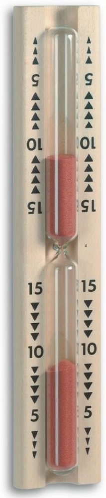 Přesýpací hodiny do sauny. Měřený čas je pouze orientační. Technické parametry: - Rozměry: 287 x 52 x 30 mm - Hmotnost: 240 g - Měřený interval: 15 minut - Podklad: buk přírodní