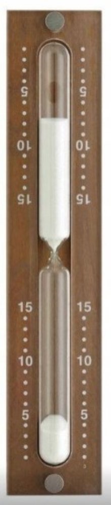 Saunové skleněné přesýpací hodiny s podkladem z kvalitního javorového dřeva s dekorativním plastovým průhledným krytem. Šroubky pro připevnění na zeď jsou součástí balení. Měřený čas je orientační.