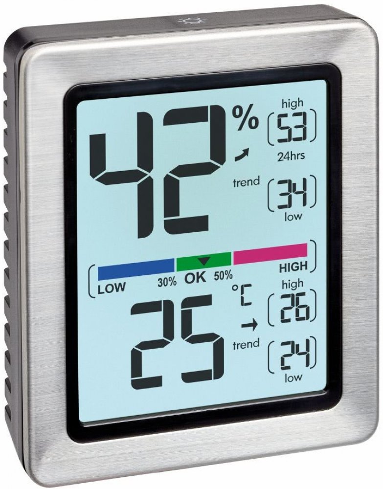 Digitální MAX/MIN teploměr s možností automatického i manuálního resetu a možností podsvícení. Přístroj má magnet k uchycení na kovových površích a rámeček z nerezové oceli. Důležitou funkcí je možnost kalibrace, takže si můžete přesné zobrazení donastavit i sami.