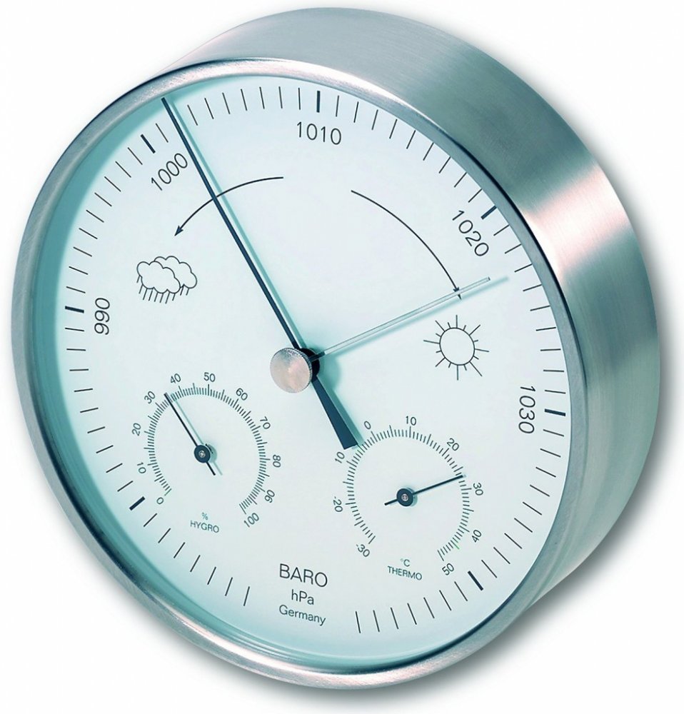 - Barometr měří tlak vzduchu a umožňuje provádět lokální předpověď počasí. Zatímco se počasí zlepšuje s rostoucím tlakem vzduchu, klesající tlak vzduchu znamená, že byste měli očekávat počasí horší. Teploměr a vlhkoměr ukazuje aktuální teplotu a vlhkost v místě instalace.