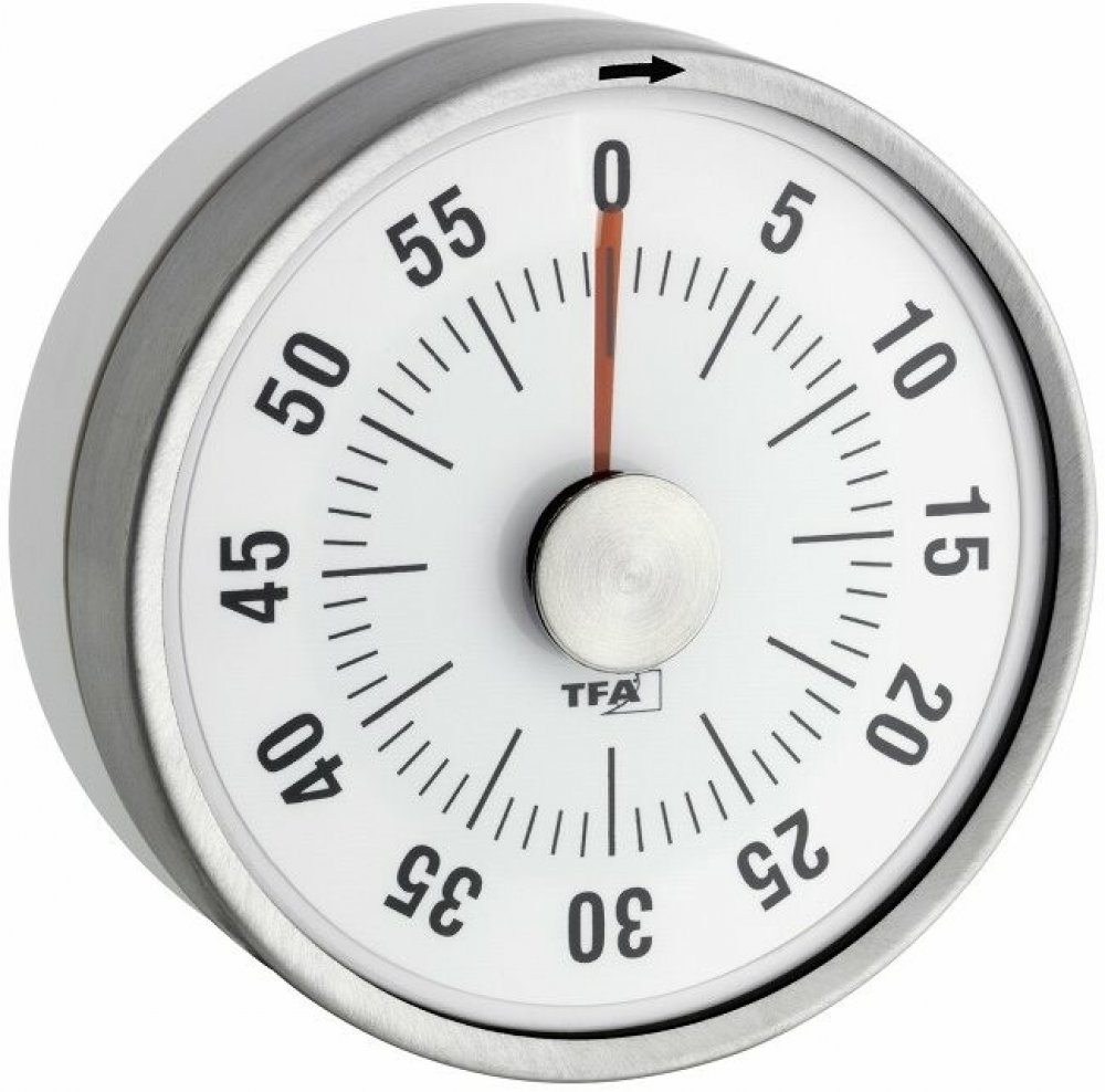 Je základní výbavou kuchyně a skoncuje s rozvařeným jídlem. Vždy užitečná minutka je klasicky mechanická, takže nepotřebuje k životu baterie. Pokud vás složitější funkce nelákají, právě tato minutka bude ideální. TFA Mechanická minutka 38.1028.02 – PUCK – bílá dobu vaření sleduje kruhovým ciferníkem a nastavíte ji klasicky pootočením. Minutka umí napočítat do 60 min a počítá v celých minutých. Zásadní funkce TFA Mechanická minutka 38.1028.02 – PUCK – bílá Mechanicky jednoduchá minutka s nejlehčím nastavováním Odpočítávat čas můžete od 60 min U sporáku ji zajistí praktický magnet