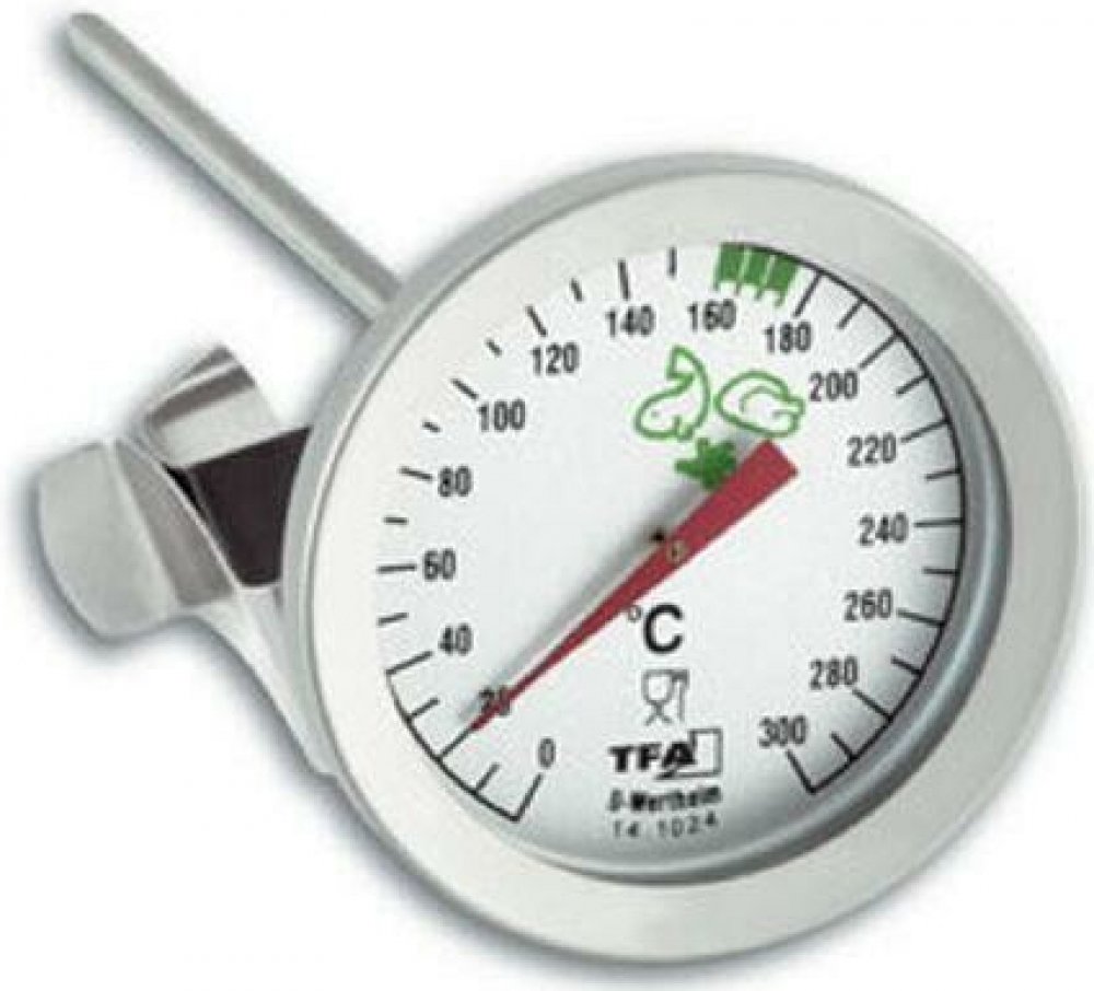 rozměry: pr. 51 x 60 x 162 mm rozsah měření teploty: 0 °C až +300 °C hmotnost: 43 g materiál: nerez ocel s klipem Vpichovací teploměr je určen nejen k měření teploty tuku při smažení, s tímto pomocníkem bude každé vaření hračkou.