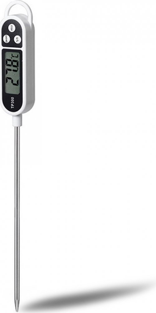 Digitální LCD teploměr se sondou, TFY AG254E je určený k měření teploty uvnitř připravovaného jídla. Vhodný na maso, mléko, těsto, čaj a jiné. Velký LCD displej na odečítání teploty. Teploměr umožňuje pohodlnou regulaci teploty jakéhokoliv produktu. Neocenitelné, pokud si nepřejete spálit / péct koláče nebo pečení. Teploměr je vybaven dlouhou jehlou z nerezavějící oceli zakončenou snímačem teploty. Teplotní rozsah: -50 ° C až + 300 ° C +/- 1 ° C. Jednotky: C, F. Délka sondy je 14,30cm. Napájení: 1x AG13 baterie (součástí balení). Automatické vypnutí šetří energii po 15 minutách. Praktický otvor v horní části na zavěšení teploměru. Funkce HOLD.