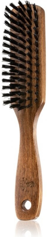 Kartáč Bluebeards Revenge s robustními syntetickými štětinami je ideální pro péči o vaše vousy. Odstraňuje z vousů odumřelou pokožku, nečistoty a zbytky jídla. Pomáhá rozmotávat vousy všech velikostí a rovnoměrně rozetřít olej nebo balzám. Rukojeť je z bukového dřeva. Délka je 21 cm.