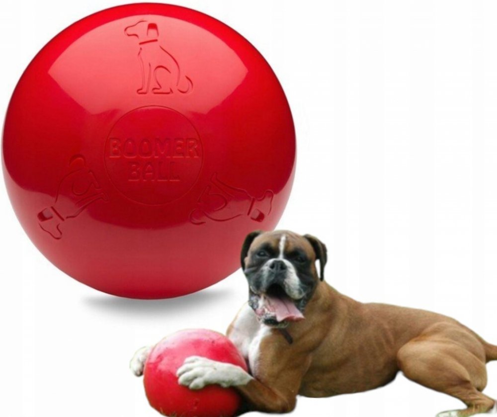Plastový míč Boomer Ball je odolná hračka určena pro hry nezaměstnaných, ale aktivních psů.