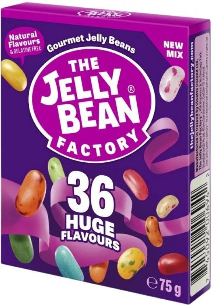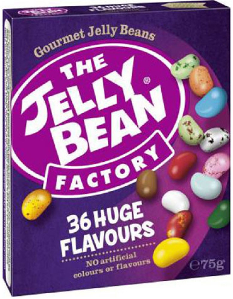 Jelly Bean fazolky s různými druhy příchutí Příchutě: Růžový grapefruit, jablko, brusinka & jablko, havajský ananas, tropický punč, meloun, borůvka, citron & limetka, mango, malina, Café Latte, anglická ostružina, máta, banánový split, francouzská vanilka, broskvový koláč, jahoda, pina colada, divoká třešeň, žvýkačka, kiwi, granátové jablko, mandarinka, jahodové smoothie, hroznové víno, marshmall...