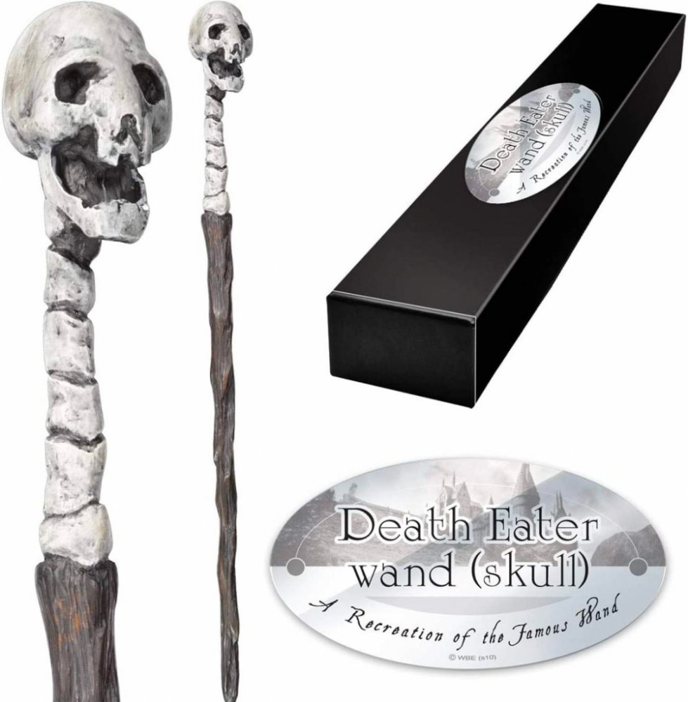 Smrtijedská hůlka ve tajemném designu lebky. Krabička obsahuje klip na jméno. Hůlka měří přibližně 35 cm.
