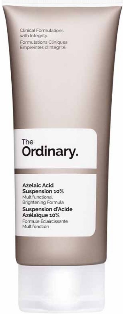 Složení pro nerovnou pleť se sklonem k tvorbě skvrn. Azelainová suspenze 10% je krémový přípravek, který rozjasňuje tón pleti a viditelně zlepšuje její strukturu, protože obsahuje vysokou koncentraci kyseliny azelainové - přírodního a účinného antioxidantu, který se nachází v obilovinách. Má nižší potenciál podráždění než jiné přímé kyseliny, což znamená, že je dostatečně šetrná pro každodenní použití v rámci péče o pleť. Nedoporučujeme kombinovat tento výrobek s přímým nebo ethylovaným vitaminem C (LAA/ELAA) ve stejném režimu. Přímé kyseliny. Retinoidy. Peptidy a EUK 134 0,1 %.