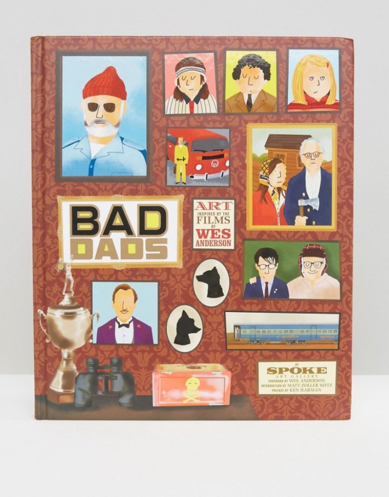 "The Wes Anderson Collection: Bad Dads Book, Hardback book, Collection of the best art from the Bad Dads exhibition, Artwork inspired by the films of Wes Anderson, Curated by Spoke Art Gallery in San Francisco, Foreword by Wes Anderson, 256 pages, H: 22.2cm/8.7" W: 26.7cm/10.5"."