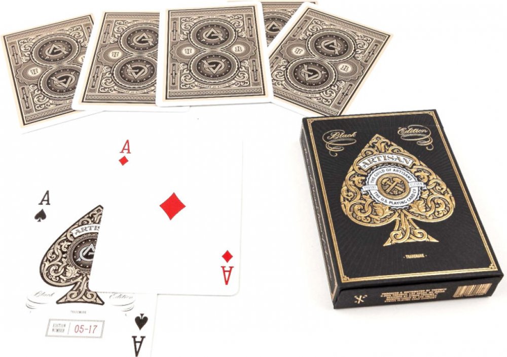 Hrací karty Artisan se vyrábějí ve společnosti The Playing Card Company ve Spojených státech pomocí papírů certifikovaných FSC pocházejících z udržitelných lesů, inkoustů na rostlinné bázi a laminátů na bázi škrobu. Výsledkem je odolný povrch, který respektuje životní prostředí. Balení je zapečetěno červeným daňovým kolkem, označujícím přesný měsíc a rok tisku.