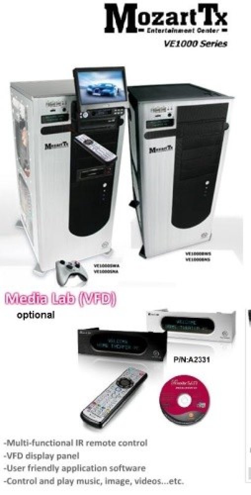 Počítačová skříň Thermaltake Mozart TX VE1000BWS. Jedná se o full ATX/BTX Big Tower určený pro základní desky podporující platformu Intel i AMD. Mimo formátu ATX je kompatibilní i s microATX/BTX a hlavně i E-ATX pro serverové základní desky. Skříň dále nabízí 5x 5.25" pozic a 6x 3.5" interních pozic. Na zadním panel můžeme najít 7x I/O slot, pro případné rozšiřující karty (zvuková karta, TV tuner, brackety atd). Chlazení obstarává deset 120mm a jedna 80mm pozice pro ventilátory. V dnešní době již standardní výstupy na předním panelu a to v podobě 4x USB 2.0, 1x Firewire IEEE 1394, 1x přední audio konektory pro vstup/výstup zvuku a 1x eSATA.