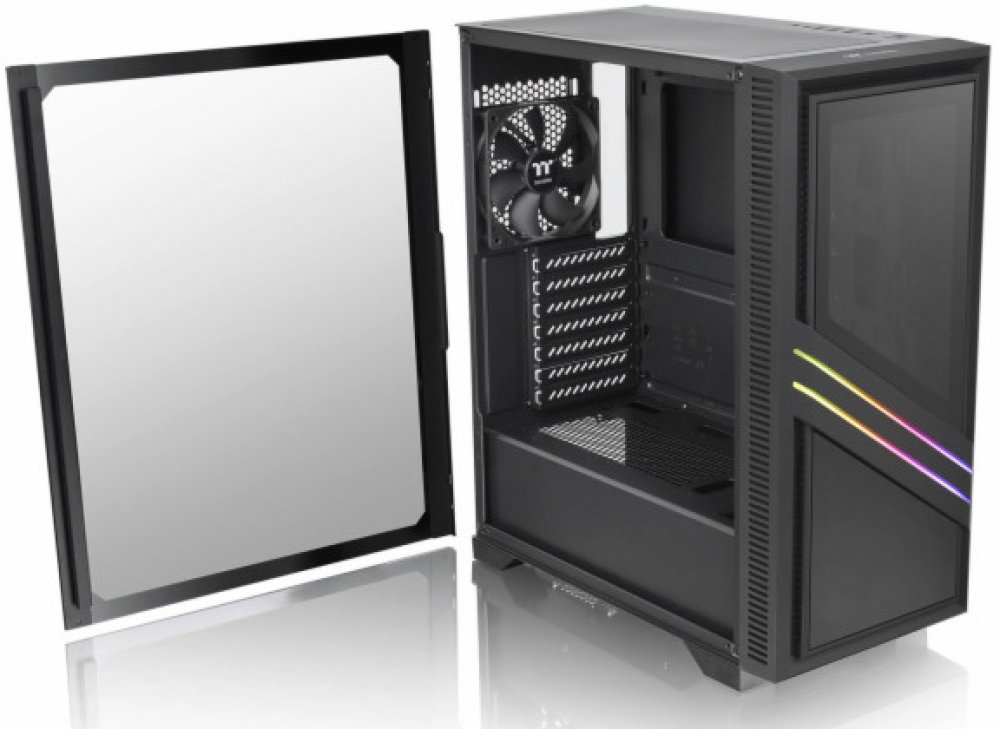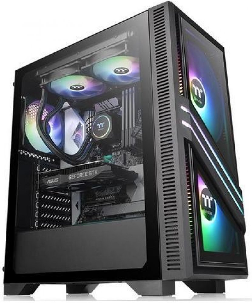 Thermaltake Versa T35 TG RGB. Formát: Midi Tower, Model: PC, Materiál: SPCC, Temperované sklo. Pozice napájecího zdroje: Vršek. Podporované průměry předních ventilátorů: 120,200 mm, Podporované průměry zadních ventilátorů: 120 mm, Podporované průměry vrchních ventilátorů: 120,140 mm. Podporované pevné velikosti disků: 2.5,3.5\". Šířka: 210 mm, Hloubka: 480 mm, Výška: 416 mm