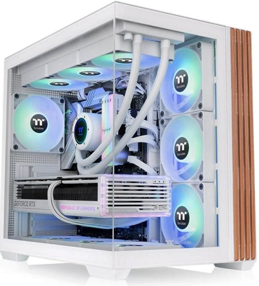 THERMAL TAKE Case View 380 WS ARGBSkříň View 380 WS ARGB Snow Mid Tower je dvoukomorová ATX skříň doplněná stylovými dřevěnými prvky. Podporuje základní desky s „Hidden-Connector“ rozložením od ASUS, MSI a GIGABYTE a je vybavena třemi 120mm ARGB Lite Reverse ventilátory na straně základní desky a jedním 120mm ARGB Lite ventilátorem vzadu.SpecifikaceVelikost SkříněVelikost SkříněMid TowerPodporované velikosti základních desekVelikost základní deskyATX, micro-ATX, Mini-ITXPozice pro disky3.5" Pozice1x2.5" Pozice2xRozšiřující slotyHorizontální7xPřední Vstup/Výstup KonektoryZvukové konektory1xUSB 3.02xUSB-C 3.21xTvrzené skloPodpora vodního chlazeníVrchní část120/240/360 mmZadní část120 mmSpodní část120/240/360 mmNapravo120/140/240/280 mmPodpora ventilátorůVrchní část3 x 120, 2 x 120, 1 x 120 mmSpodní část3 x 120, 2 x 120, 1 x 120 mmZadní část1 x 120 mmNapravo3 x 120, 2 x 120, 1 x 120 mm2 x 140, 1 x 140 mmMaximální velikosti komponentůMaximální velikost CPU chladiče160 mmMaximální délka GPU 415 mmMaximální délka zdroje200 mmVelikost a VáhaVelikost411 × 285 × 447 mm.