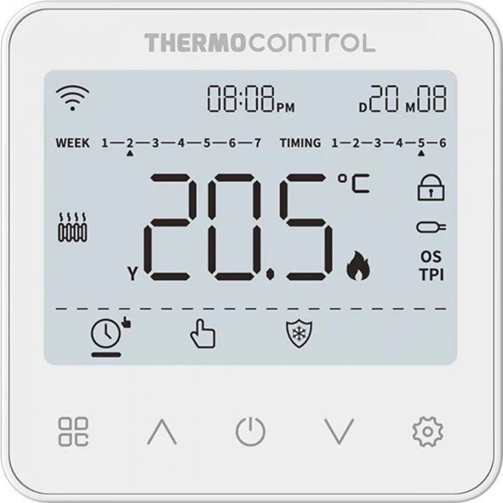 TC 50-WIFI je moderní termostat, který slouží k ovládání vytápění nebo chlazení. Je určen pro montáž do elektroinstalační krabičky o průměru 68 mm. Vyznačuje se přehlednou nabídkou a množstvím užitečných funkcí. Umožňuje vzdálené ovládání topného systému pomocí aplikace Tuya Smart. Programování termostatu je velmi jednoduché a umožňuje přizpůsobit pracovní cyklus vytápění dennímu rytmu uživatelů.Technické parametry:Napájení: 230 V AC 50 HzMax. zátěž: 3(1)ARozsah regulace teploty: 5 °C až 35 °CŘídící algoritmus: TPI, HYSTEREZE (0,1 °C až 4 °C)Komunikace: Bezdrátová, Wi-Fi 2,4 GHzVstup S1 – S2: Externí čidlo NTC 10 kΩ (není součástí balení)Výstup: COM / NO (beznapěťový)Stupeň ochrany: IP20Rozměry: 86 x 86 x 35 mm