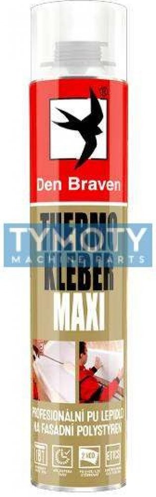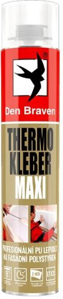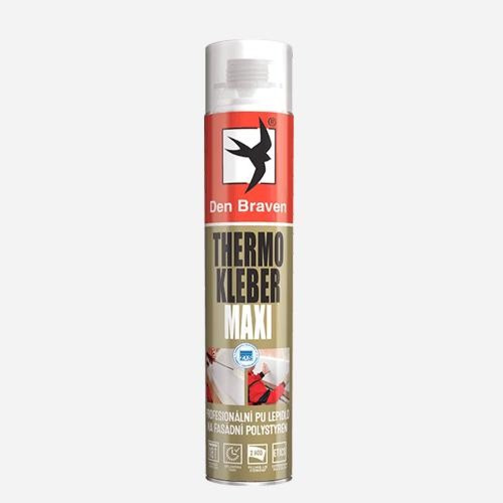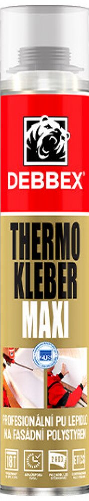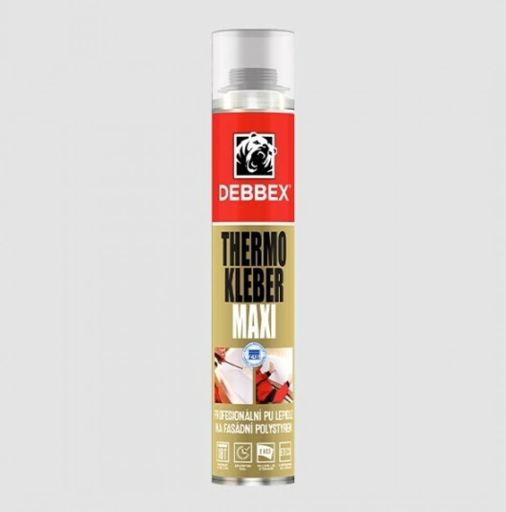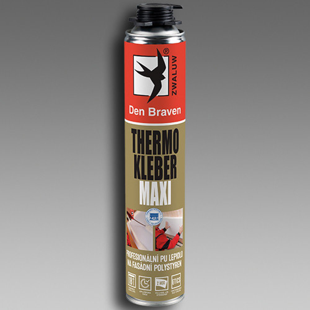 Lepidlo nízkoexpanzní polyuretanová pěna na polystyren THERMO KLEBER MAXI je speciálně vyvinuté pro požadavek vysoce efektivního lepení lehkých izolačních materiálů a dekorativních prvků z polystyrenu na svislé konstrukce. Výborné při tvorbě tepelného štítu, (zdivo-PUR-EPS). Výsledná pěna má výbornou strukturu i při +5 °C. Vyniká velmi vysokou výtěžností.