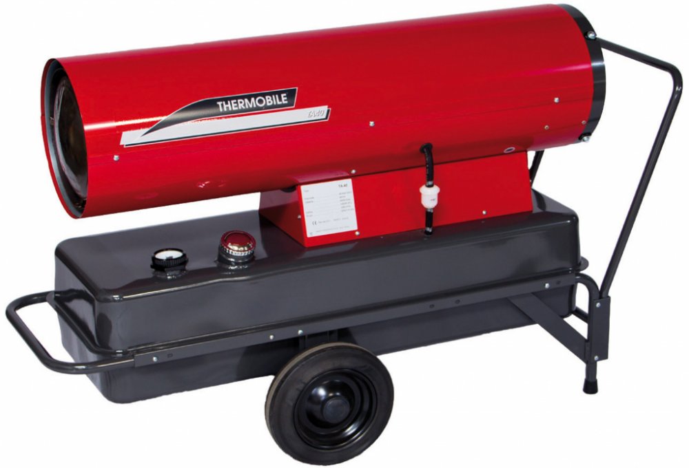 Topidla s přímým spalováním bez vývodu do komínu Thermobile řady TA jsou určeny pro spalování nafty, nebo extra lehkého topného oleje (ELTO). Automatický hořák, vysokotlaké čerpadlo, kontrola plamene, přípojka pro termostat, systém s 1 větví, teplota vyfukovaného vzduchu 450°C, nádrž pro 16 hodin nepřetržitého provozu. Dobu hoření a manipulaci lze zařadit do kategorie "velmi dobré". Volitelné vyh...