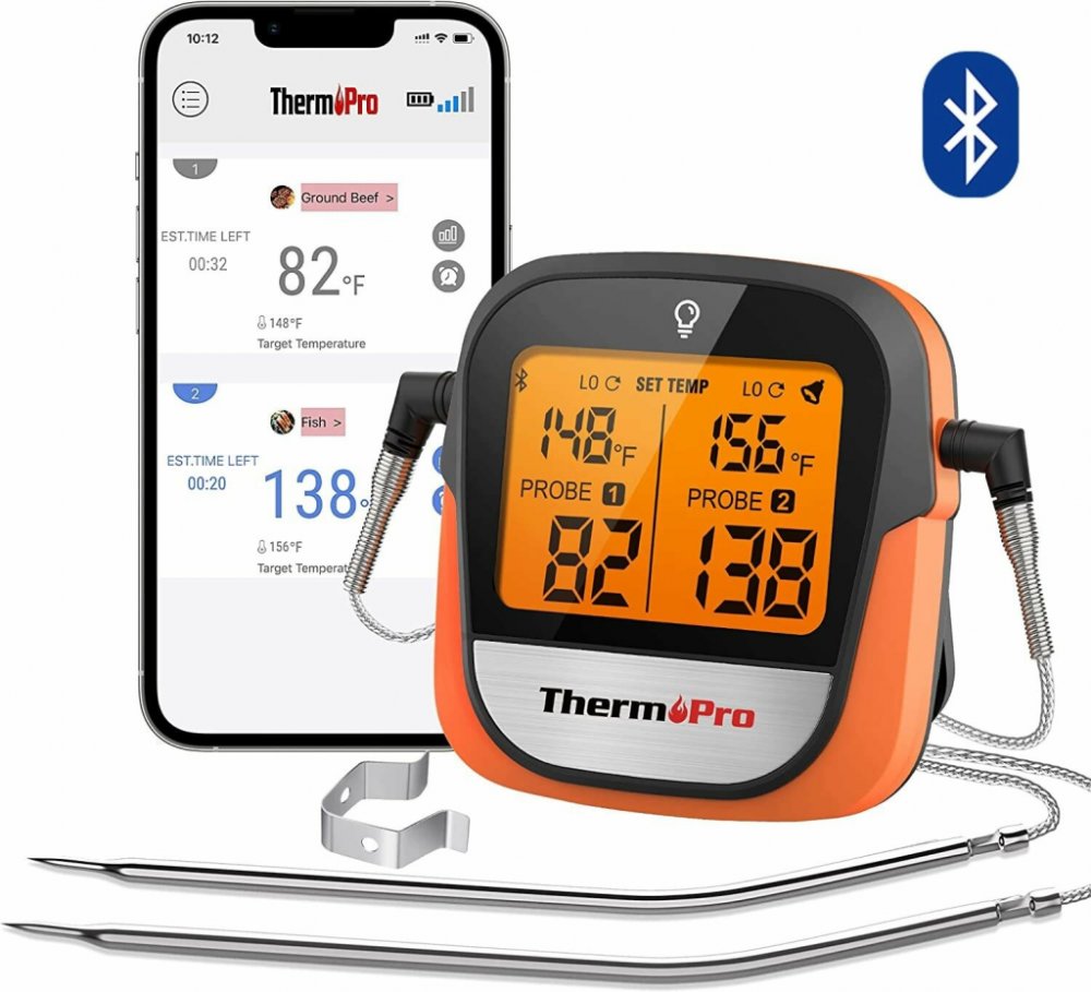Digitální kuchyňský teploměr ThermoPro bude ideálním pomocníkem v domácnosti. Je upravený pro použití při vaření či pečení, abyste mohli při přípravě snadno sledovat teplotu oblíbeného kousku masa či dezertu. Disponuje 2 teplotními sondami, které vám pomohou zkontrolovat teplotu u více různých pokrmů současně. Teploměr odolá teplotám v rozsahu od -10 do 300 °C. Kuchyňský teploměr ThermoPro je vyba...