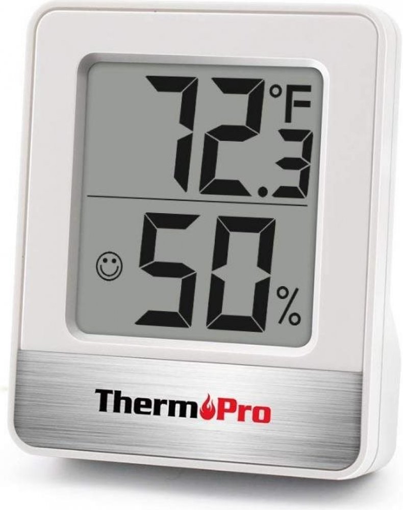 Digitální teploměr a vlhkoměr. Určen do interiéru. Lze postavit i pověsit. Měřič vlhkosti indikuje stav pomocí ikon. Velký LCD displej s výraznými údaji. Obnovovací frekvence při měření teploty je 10 s. Volitelná jednotka zobrazení teploty °F / °C.