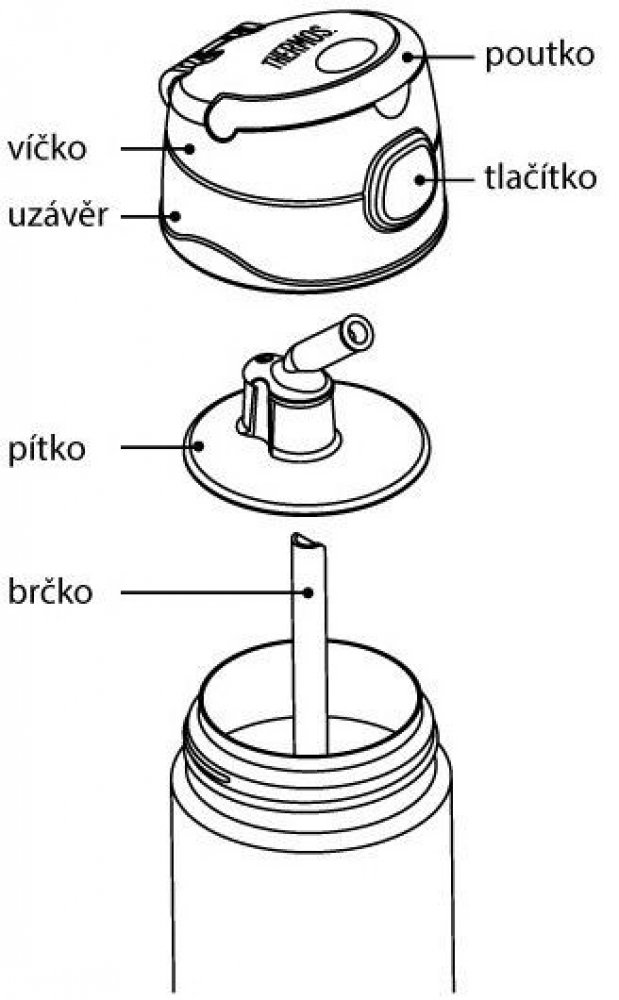Teplé a studené nápoje se pijí přímo z termosky - bez nalévání do šálku. Nápoj se pije pomocí brčka - není nutné naklánět termosku.
