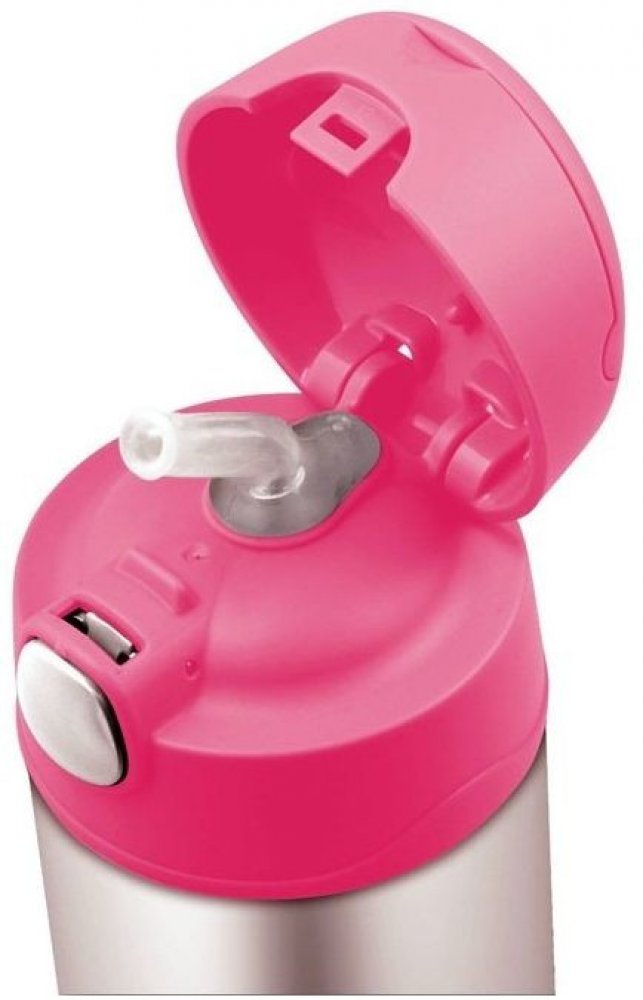 Otevření termosky je velmi rychlé a snadné. Děti otevřou i zavřou termosku samy bez pomocí rodičů. Postup: 1 - zmáčknutí tlačítka, 2 - víčko termosky se samo otevře.