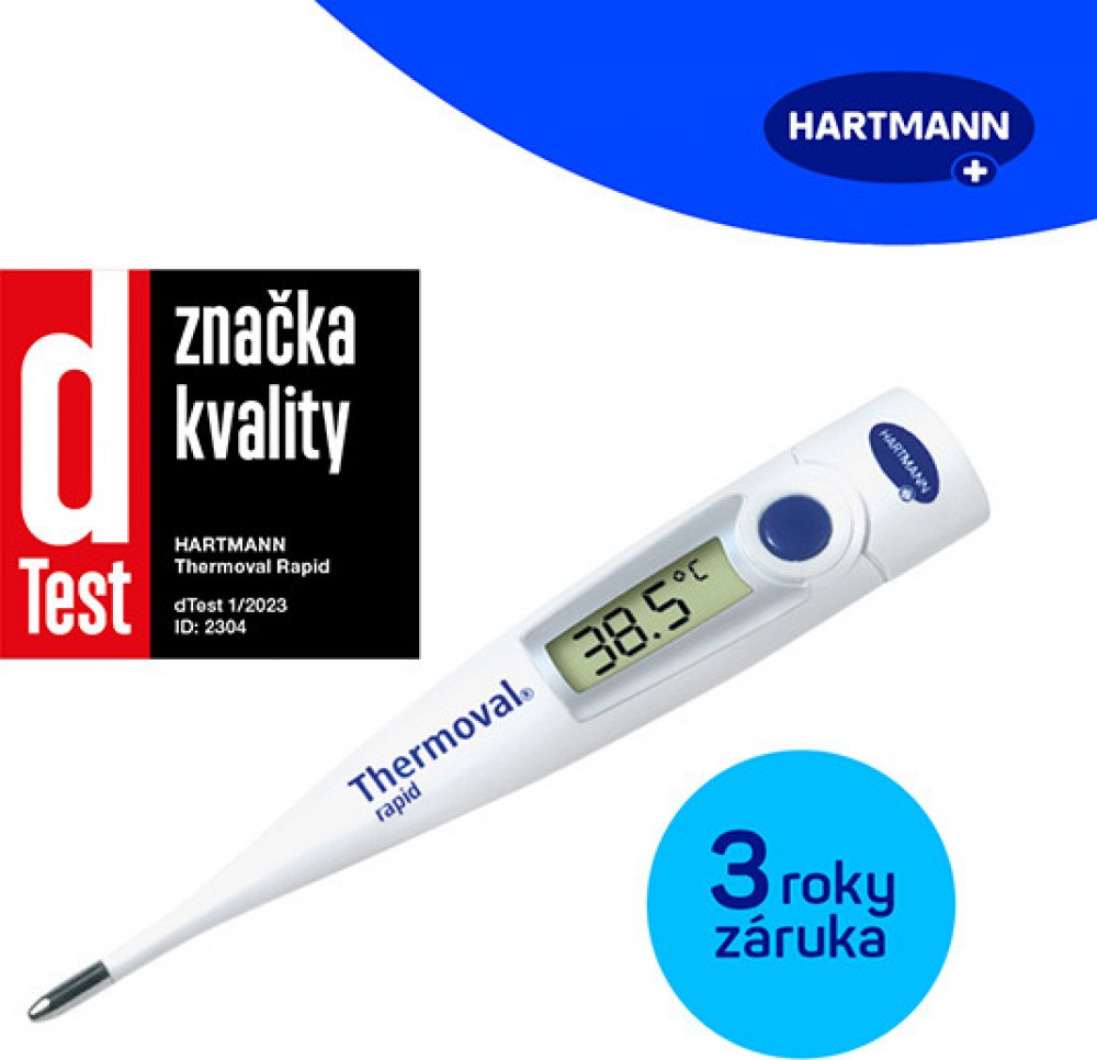 Nechcete se zdržovat zdlouhavým měřením teploty? S digitálním teploměrem HARTMANN Thermoval rapid změříte teplotu během pouhých 10 vteřin. Naměřenou hodnotu navíc snadno přečtete na velkém displeji. Teploměr, který je hrdým nositelem značky kvality dTestu, naměří hodnoty tělesné teploty v konečníku, v ústech nebo v podpaží.
