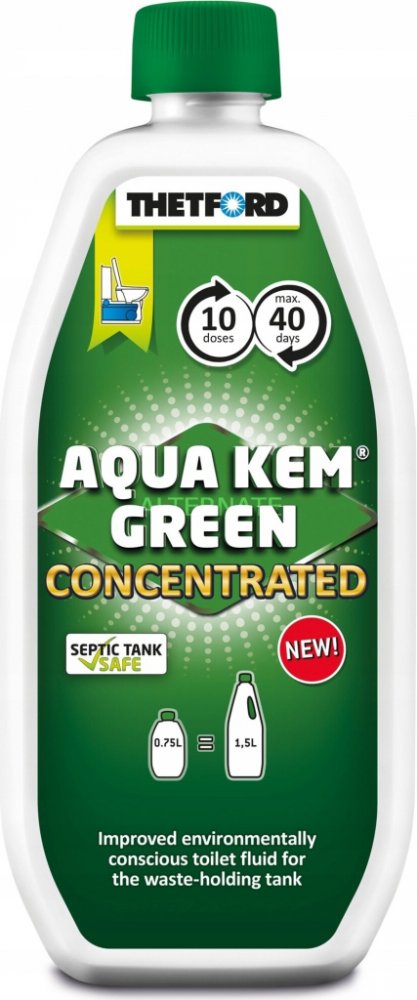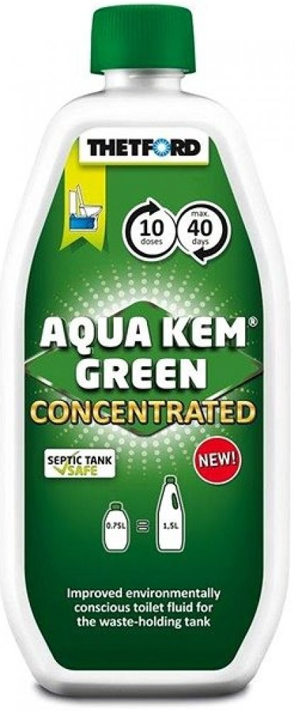 Thetford Aqua Kem Green Concentrated je výsledkem více než 50leté zkušenosti firmy Thetford v oblasti sanitárních řešení pro mobilní použití. Přípravek kombinuje ekologickou šetrnost s vysokou účinností, aby poskytoval spolehlivé výsledky i při náročném cestování v oblastech s přísnými ekologickými požadavky.